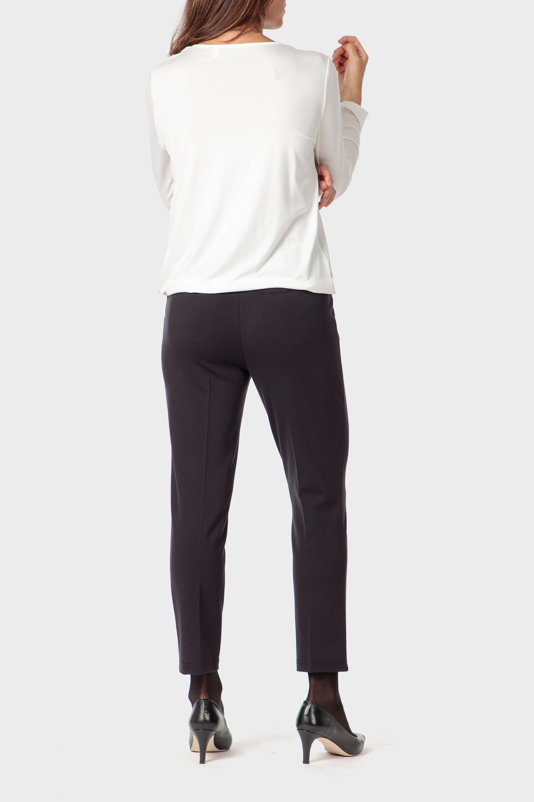 White blouse two front pockets rhinestone details adjustable drawstring on the bottom v neck long sleeves.