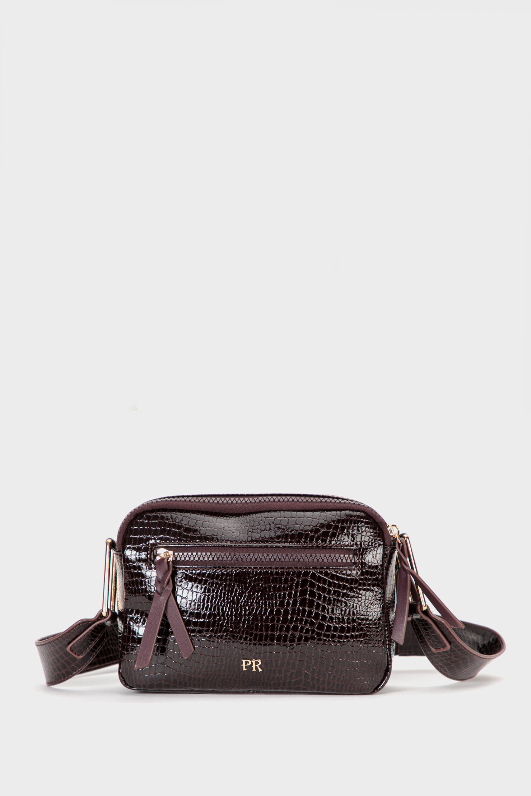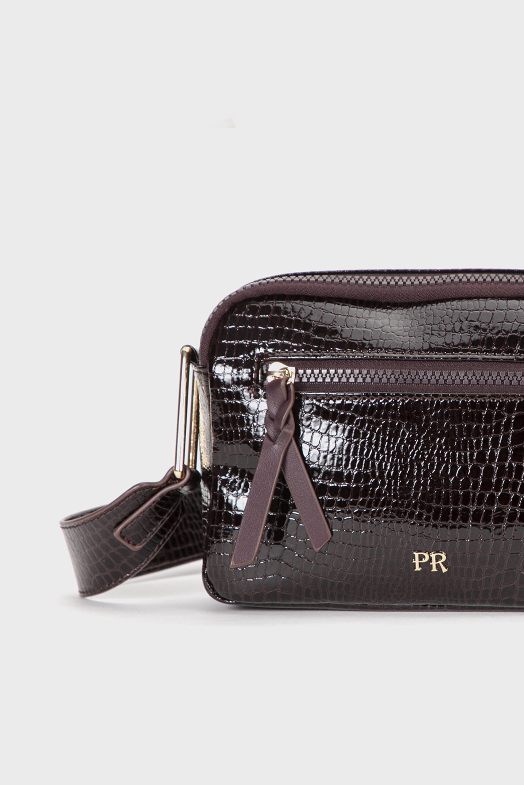 Crocodile shoulder bag two outer pockets adjustable shoulder strap.