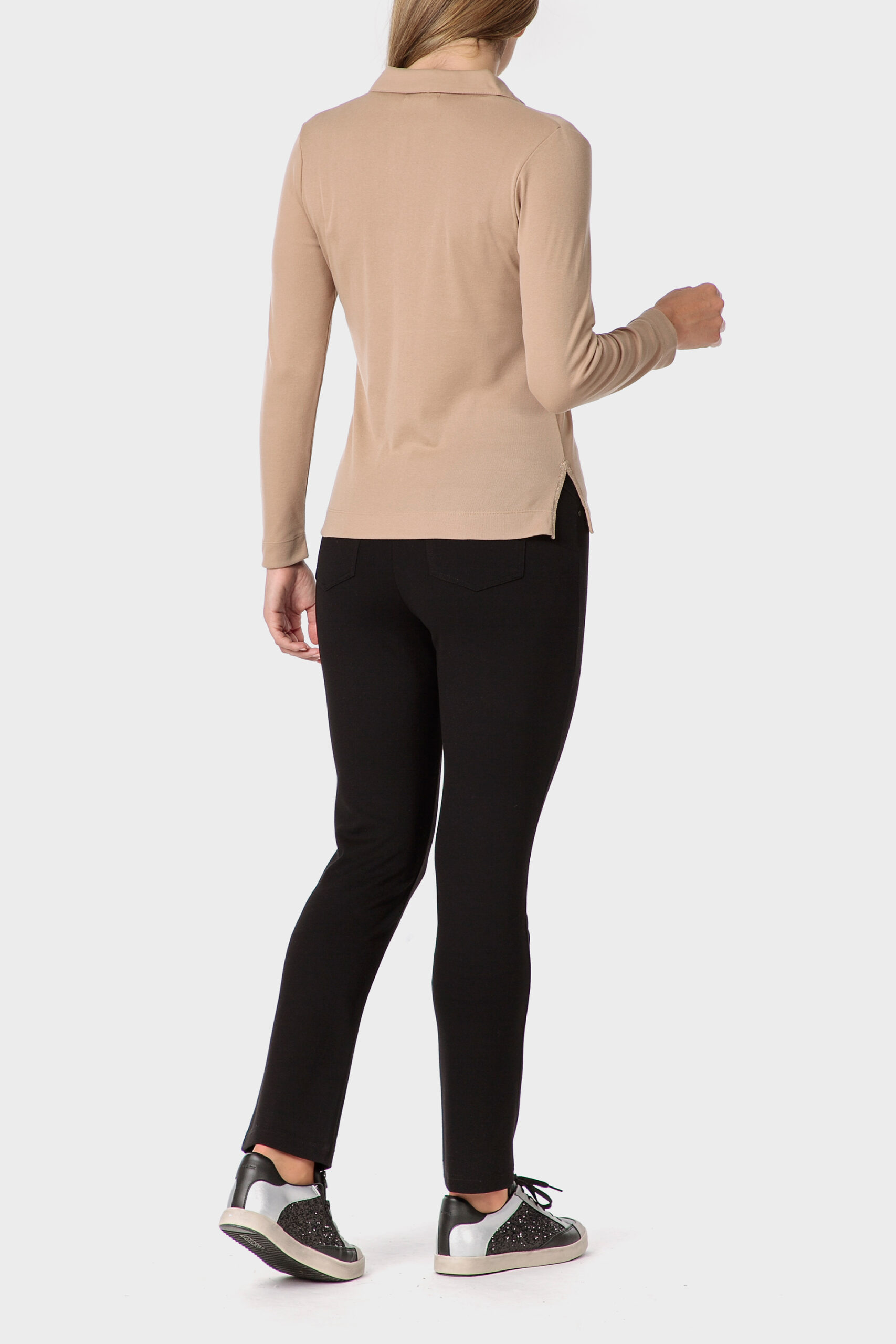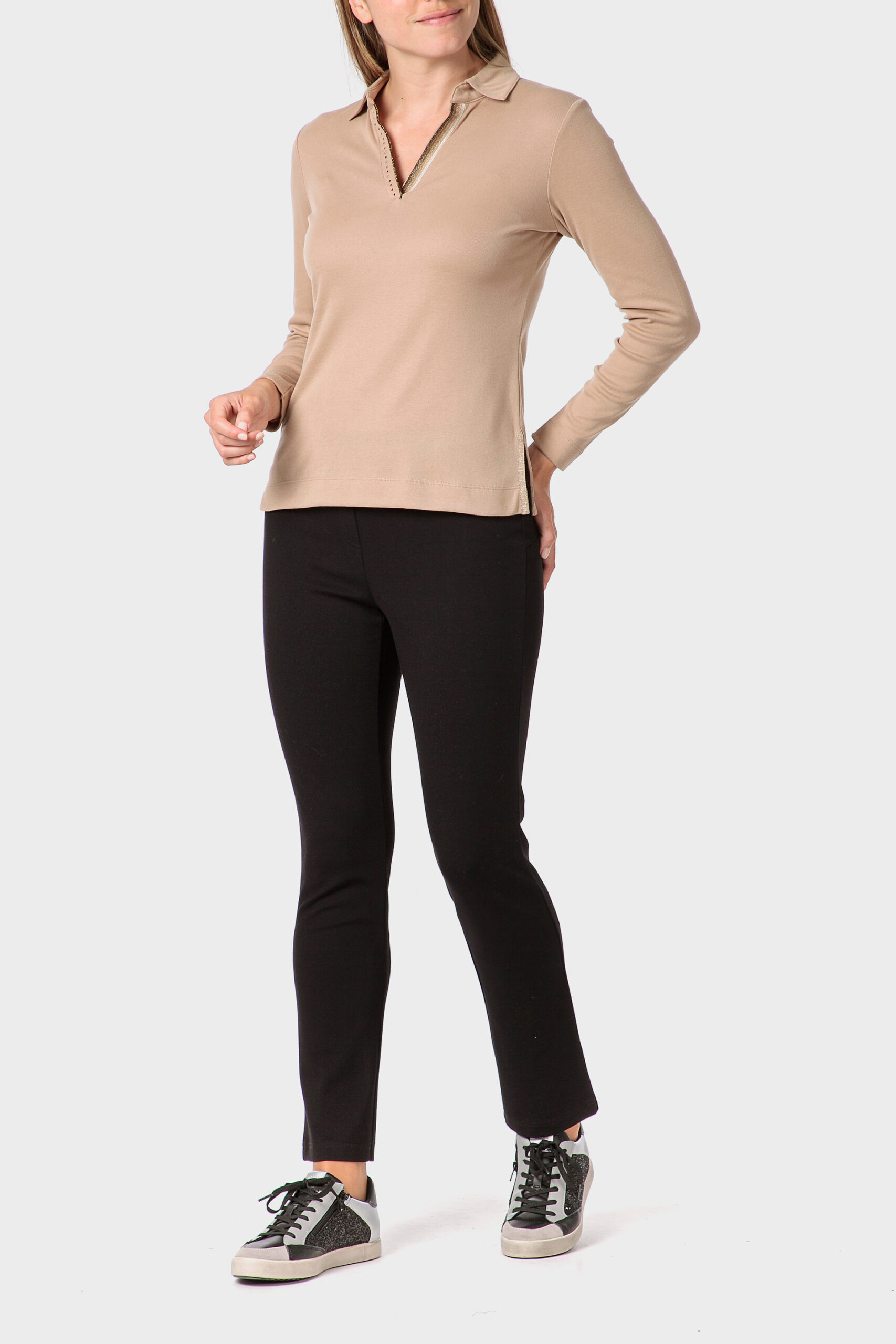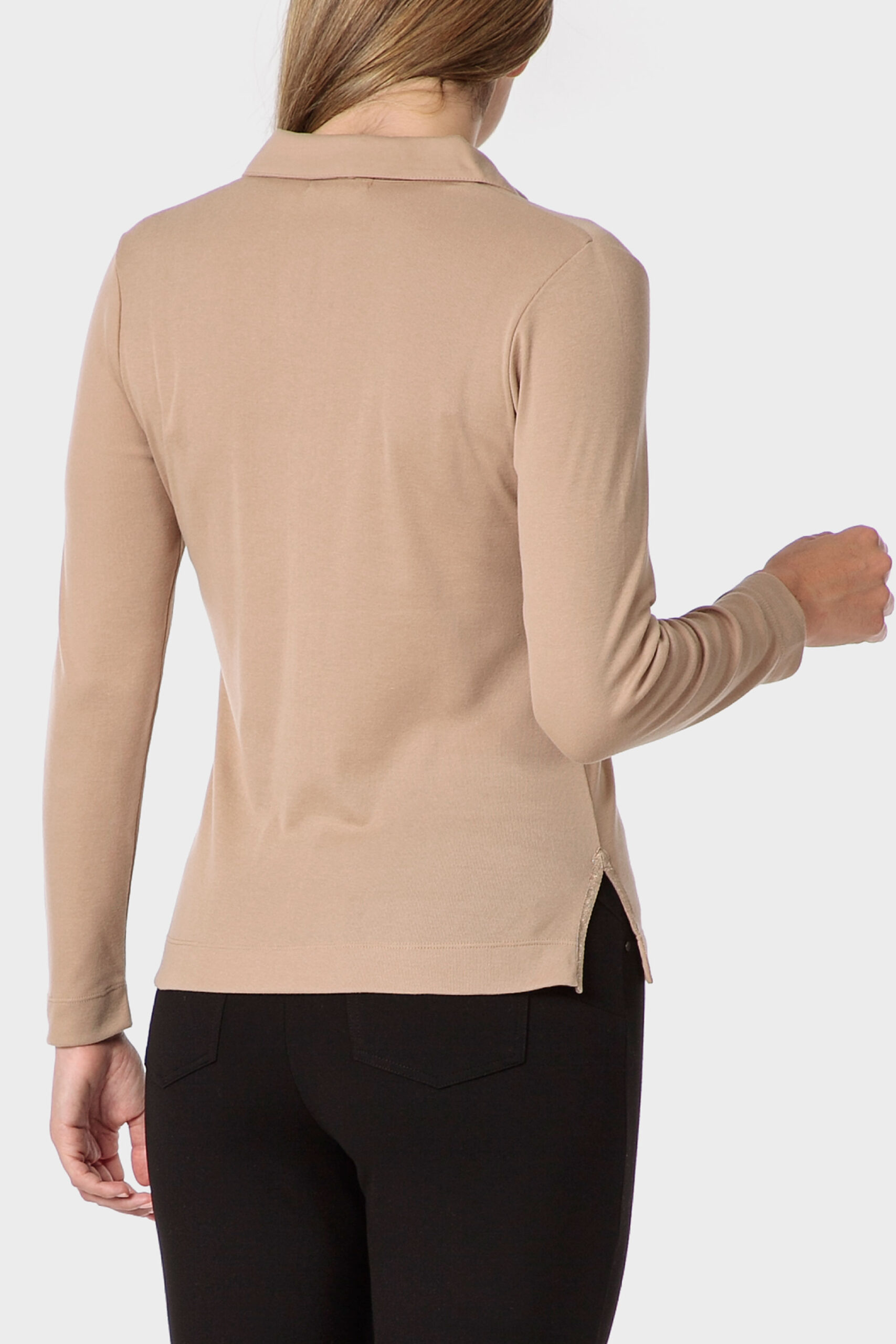 Basic polo gemstones detail metallic thread details side slits long sleeves. Available in two colors.