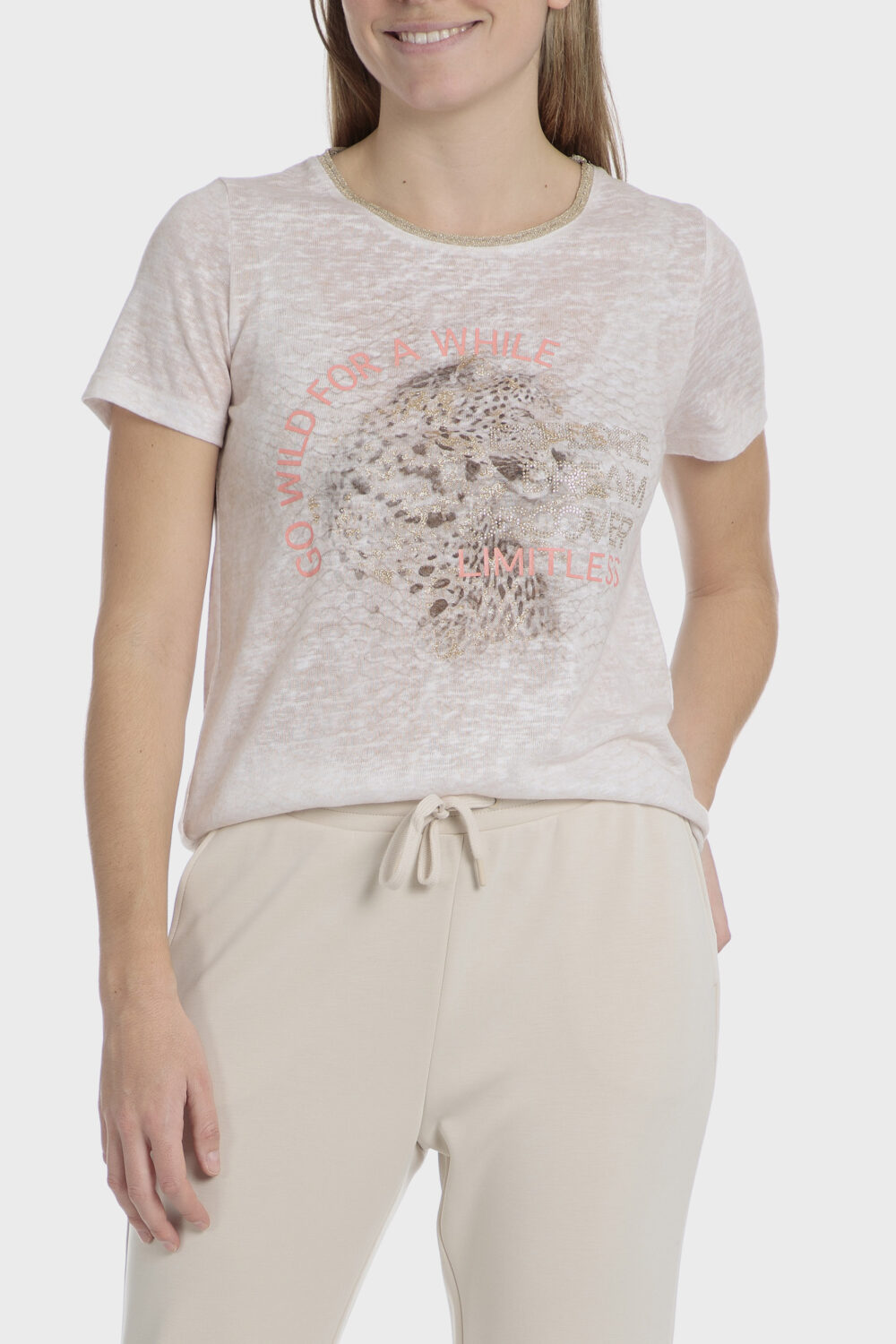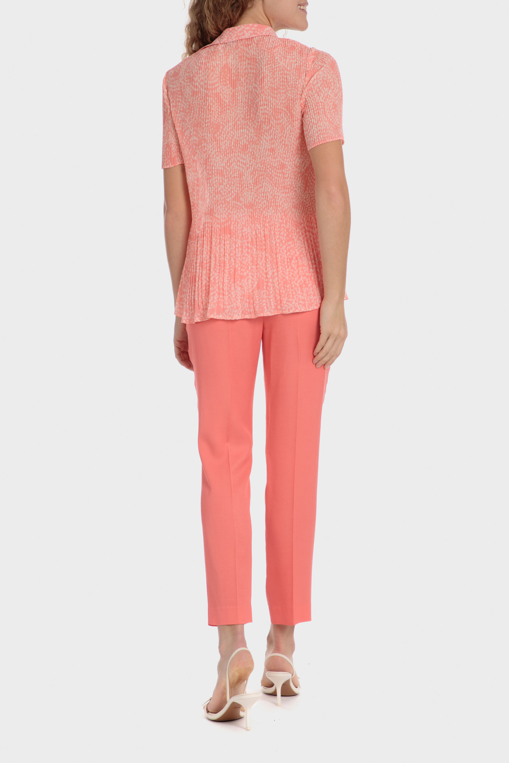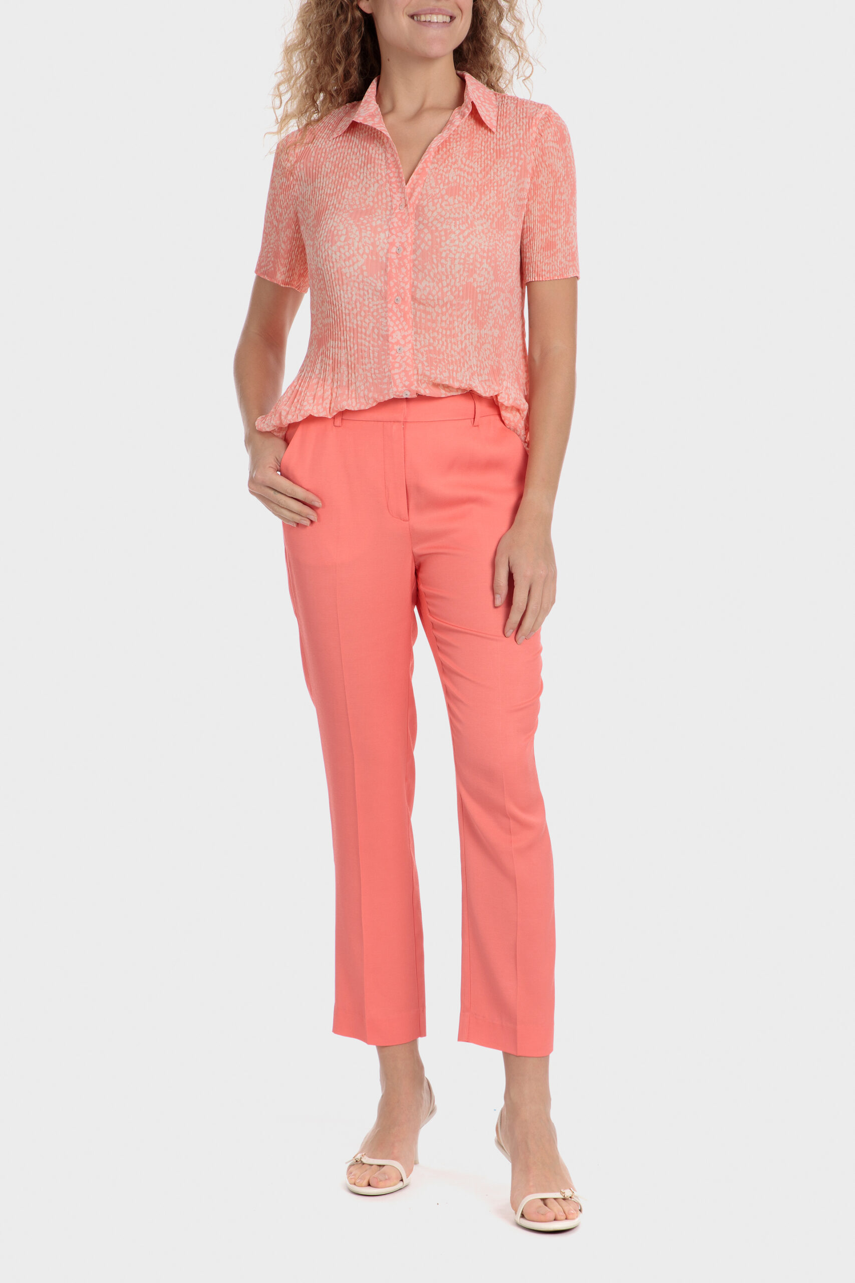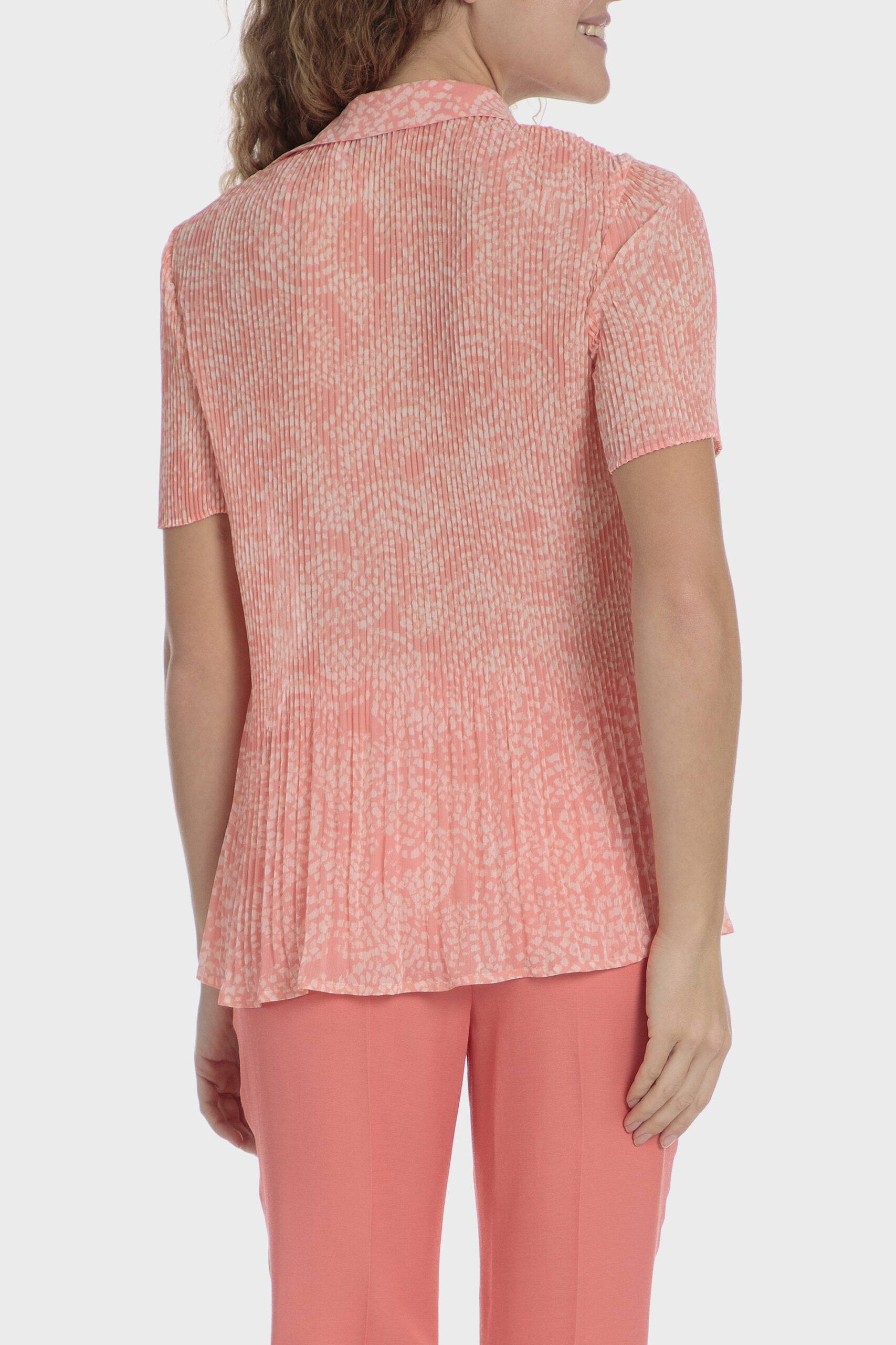 Printed shirt coral coloured v neck long sleeves with elastic cuffs front buttoned closing.